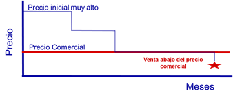 Empezar con un precio alto para después bajarlo es una mala estrategia. La mayoría de los prospectos se presentan en la etapa inicial. Bajar precio después que estos clientes se han ido ya no tiene mayor sentido.